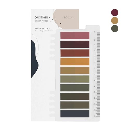 Ordinate Klisterlappar, 200 stycken, transparenta, självhäftande remsor, indexflikar, skrivbara självhäftande markörer, pastellfärgade, kontorstillbehör, post it-lappar (A, 200 st., mystisk höst)