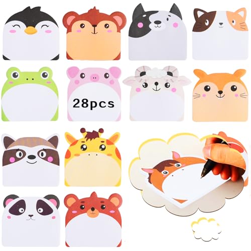 28 stycken tecknade djur klisterlappar, små klisterlappar barn klibbig anteckningar, söt mini post it rolig självhäftande lappar djurformad klisterlappar för gästgåvor barnens födelsedag, kontor (840