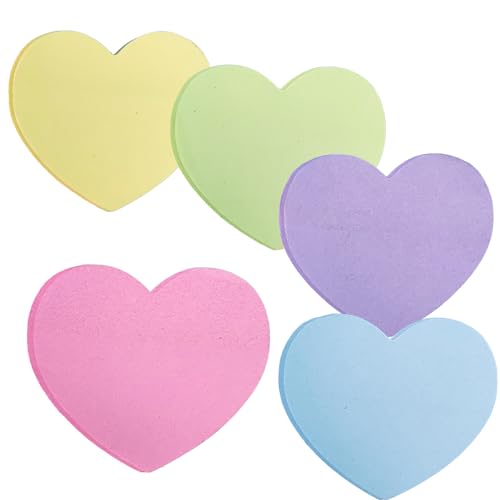 Okaywork färgade klisterlappar, 600 ark hjärta anteckningar, klibbiga anteckningar, post It, klisterlappar, självhäftande lappar färgade anteckningsblock för kontor skola hem 5 färger 50 x 43 mm