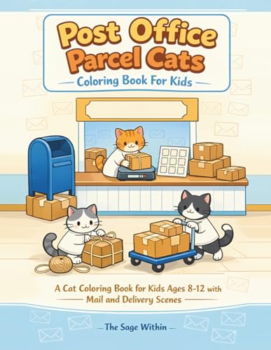 Post Office Parcel Cats Coloring Book For Kids: A Cat Coloring Book for Kids Ages 8–12 with Mail and Delivery Scenes