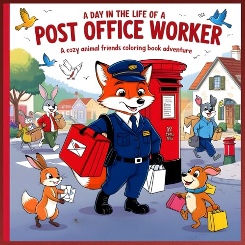A Day in the Life of a Post Office Worker – Cozy Animal Friends Coloring Book for Kids: Fun Postal-Themed Coloring Pages with Cute Animal Mail ... Easy Big-Outline Designs for Kids Ages 4-8