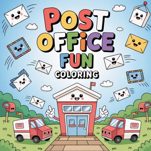 Post Office Fun Coloring: Cute coloring book for kids, coloring book for adults, kawaii coloring book, Coloring Book for Adults and Kids, Bold and Easy