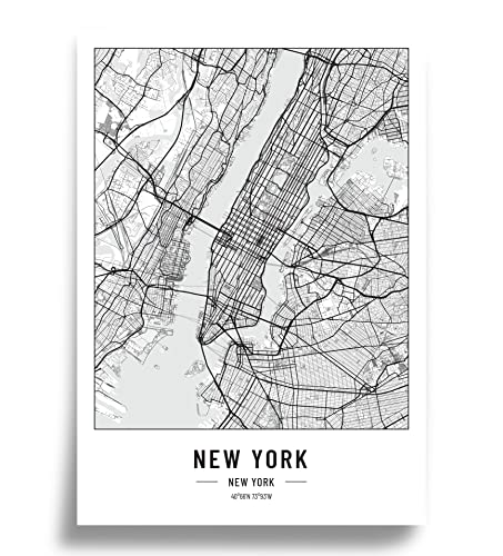 Cool Factory 2 x stadskarta affisch A2 svart vit | 250 gram papper | Bilder för vardagsrum och sovrum | Mycket många stadsmönster | Perfekt presentidé | utan ram | Poster New York och Los Angeles