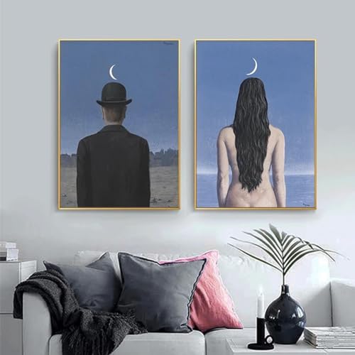 Moderna tryck René Magritte om ljuset Lyxig vintageserie Canvastavla Målning Poster Väggtavla för heminredning 50x70cm-2 st utan ram