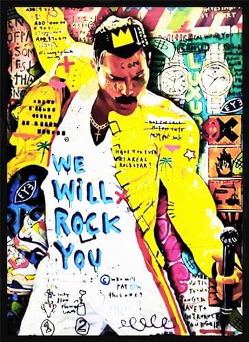 KUSTOM ART Väggkonst Stor Serie Rockstar Freddy Mercury Queen Musik Poster Pop Art Version Konsttryck på bestruket papper 40 x 30 cm Ingen ram