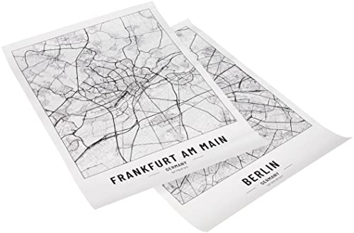 2 x stadskarta affischer A2 svart vit | 250 gram papper | Bilder för vardagsrum och sovrum | Mycket många stadsmotiv | Perfekt presentidé | utan ram | Poster Franfurkt och Berlin