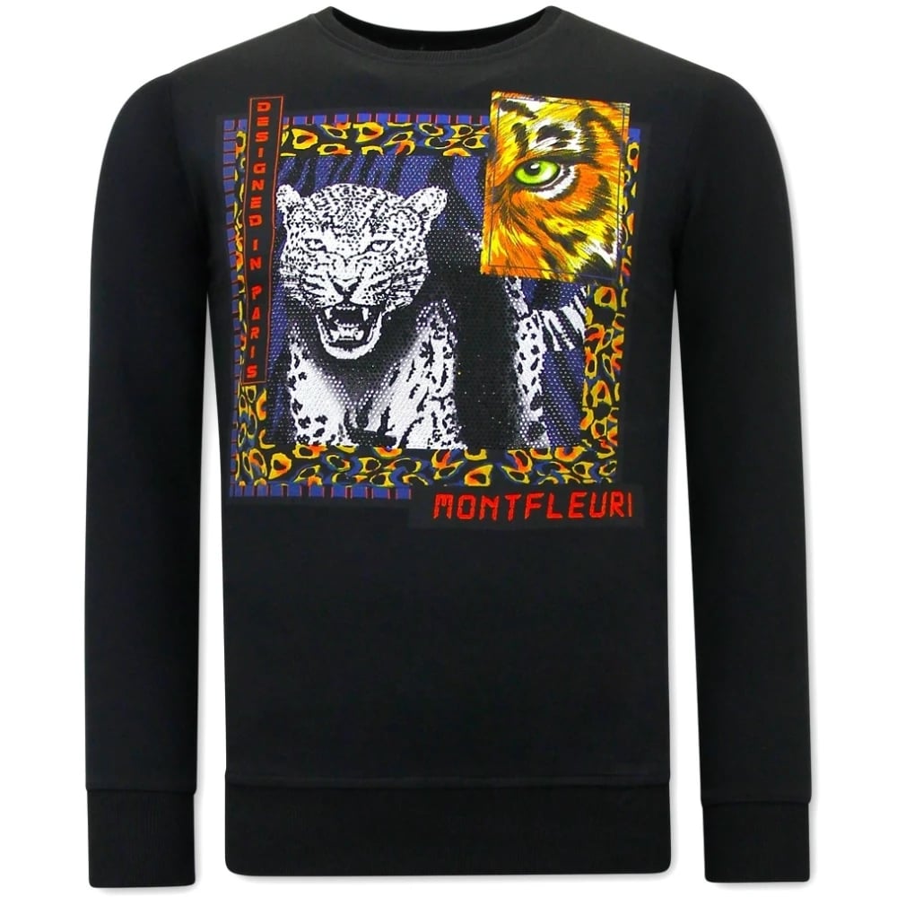 True Rise, Sweatshirts & Hoodies , Herr, 2Xl, Bomull, Lång Svart Tröja Tiger Poster