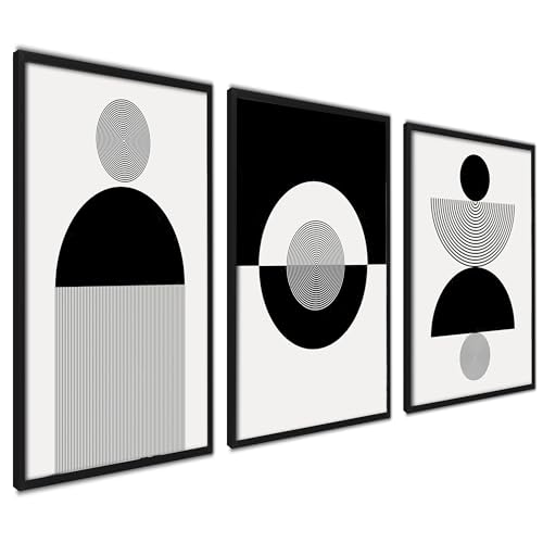 ag.art deco Tavlor för Vardagsrum | 50 x 70 cm Tryck för Väggar | Posters för Hall och Trappa | Heminredning | Oinramade Affischer | Set om 3 Bilder (Svartvit Abstrakt)