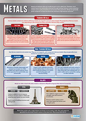 Metaller | Design & Technology posters | laminerat glansigt papper som mäter 850 mm x 594 mm (A1) | Affischer för design och teknik | Pedagogiska diagram av Daydream Education