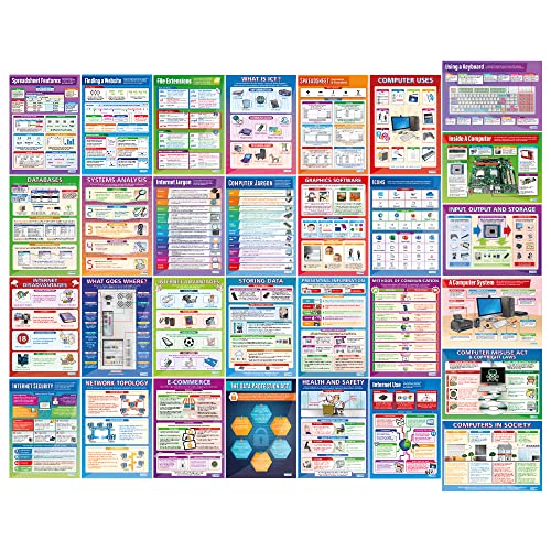 ICT posters - set med 40 | ICT-affischer | laminerat glansigt papper som mäter 850 mm x 594 mm (A1) | datortabeller för klassrummet | utbildningsdiagram av Daydream Education
