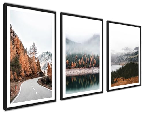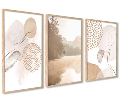 ag.art deco Tavlor för Vardagsrum | A3 30x40 cm Tryck för Väggar | Posters för Hall och Trappa | Heminredning | Oinramade Affischer | Set om 3 Bilder (Brun Landskap)