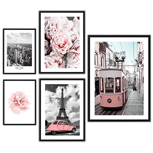 ag.art deco Premium Tavlor för Vardagsrum | Set om 5 Väggtryck | Posters för Hall och Trappa | Heminredning & Konst | Oinramade Affischer (Pastellrosa-Grå)