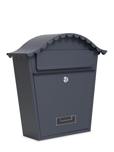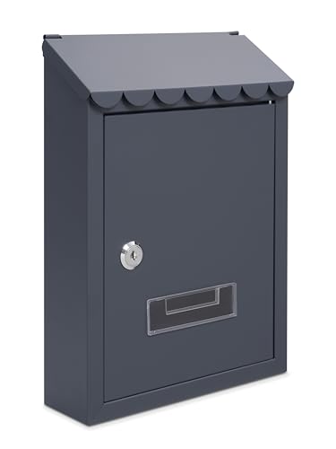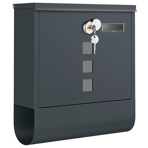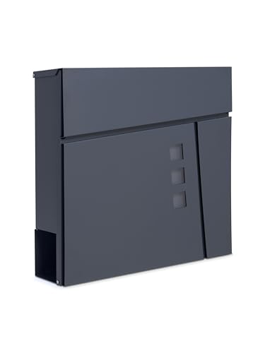 Postlåda väggpostlåda av stål med visningsfönster, lås, kopparkärna, postlåda för utomhusbruk, 37 x 10,5 x 37 cm, mörkgrå |