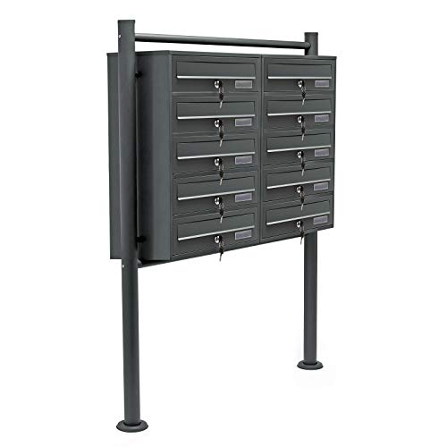 Wiltec Fastighetsbox med 10 fack 945 x 270 x 1500 mm postlåda i antracit fristående flerfacksbrevlåda med nycklar och namnsskyltar brevlåda med stolpe