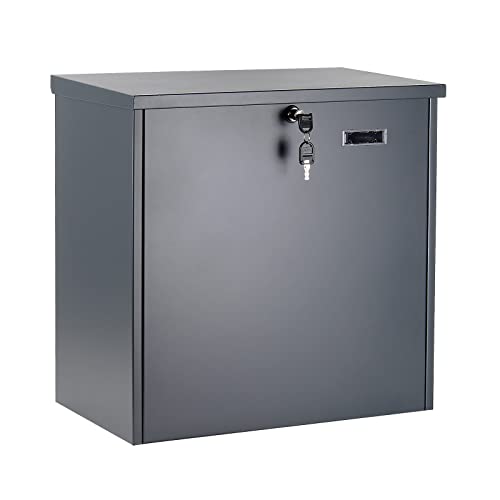 Väggpostlåda med lås, lock, postlåda av galvaniserat stål, för utomhusbruk, 37 x 10,5 x 37 cm, mörkgrå |