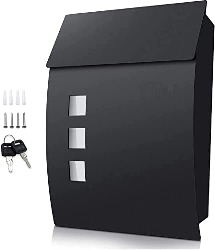 Blandade kollektioner väggmonterad postlåda, låsbar brevlåda med 2 nycklar, väderbeständig brevlåda i galvaniserat stål, lätt att installera, 36 x 13 x 37 cm (grå)