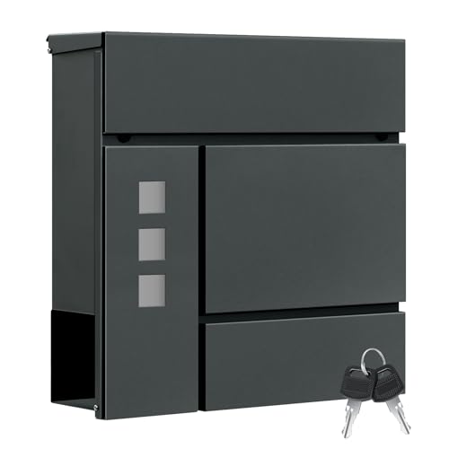 WOLTU Brevlåda med tidningsfack, postlåda med lås, 2 nycklar, låsbar väggbrevlåda med gångjärnslock, modern, antracit, 37 x 37 x 10,5 cm, BK004an