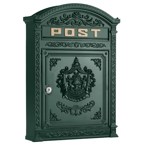 Brevlåda Engelsk postlåda för väggmontering grön nostalgisk antik stil gjord av gjuten aluminium standardformat för bokstäver till stora bokstäver
