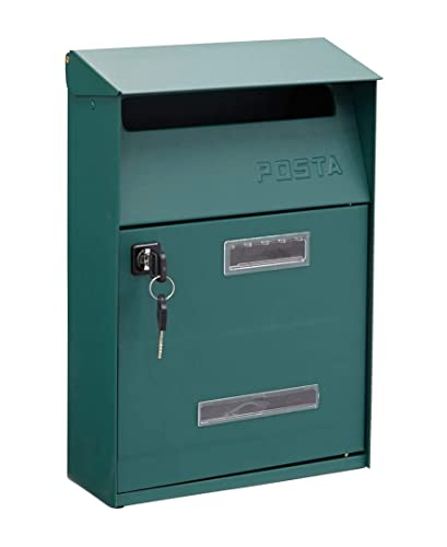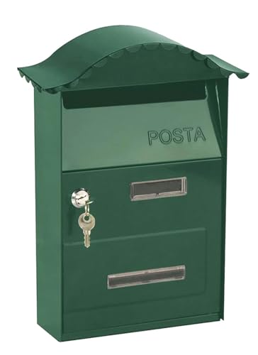 Sterling MB06G klassisk 2 väggmonterad galvaniserat stål låsbar väderbeständig postlåda grön-36 x 38 x 13 cm, mattgrön, 364 x 380 x 134 mm