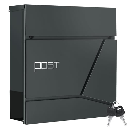 WOLTU Brevlåda med tidningsfack, postlåda med lås, 2 nycklar, låsbar väggbrevlåda med gångjärnslock, modern, antracit, 37 x 37 x 10,5 cm, BK004an