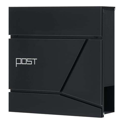 Blandade kollektioner väggmonterad postlåda, modern design med tidningsplats, låsbar brevlåda lyftklaff dolt lås, lätt att installera, 37 x 10,5 x 37 cm (svart)