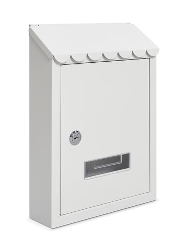 Blandade samlingar väggmonterad postlåda, galvaniserat stål låsbar brevlåda med 2 nycklar, väderbeständig brevlåda, 21 x 30 x 7 cm (vit