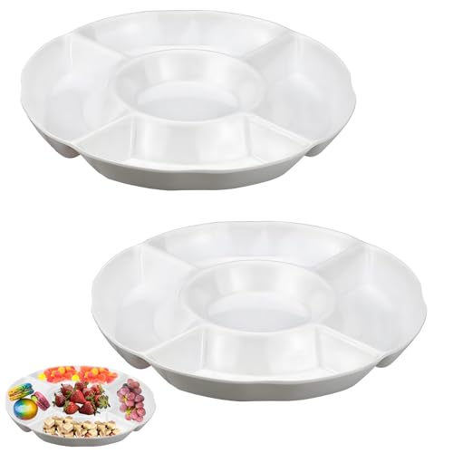 2 stycken snacktallrikar med fack, 23 cm snackstallrikar lämplig för godis, potatischips frukt och nötter samt för fester familjer och utomhusaktiviteter färgen på denna produkt är vit