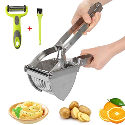 HOTLIKE Rostfritt stål potatisrispare, potatismosare, multifunktionell professionell mosare, slitstark matpress med borste, skalare, hjälpare i köket för frukt, grönsaker, puré