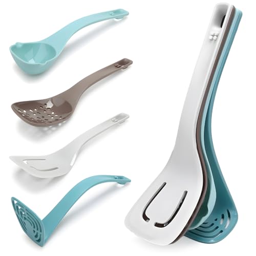 Wintem Set med 4 köksredskap i PVC - säkra och hållbara upp till 220 °C - Ergonomiska och halkfria - Lätt att förvara och rengöra - Set bestående av spatel, slev och potatismosare