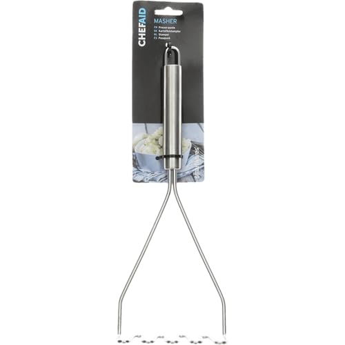 Fissler Essential/rostfritt stål potatismosare (34 cm) handmasser, för knölar och grönsaker, med hängande ögla – diskmaskinssäker