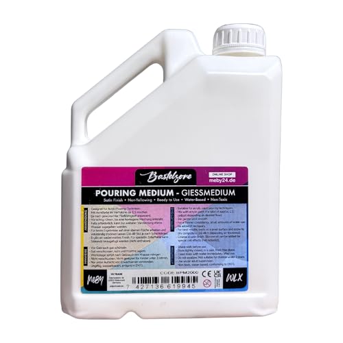 Bastelzone Pouring Medium 3 liter. Vattning medium för flödesteknik och gjutning. Gjutmedium, gjutmedium för akrylfärger. Icke-gulnande, flexibel, vattentät. Ökar färgflödet. 3000 ml