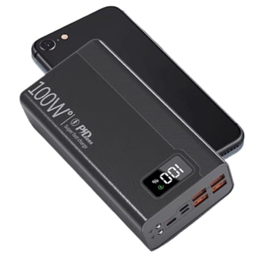 100W Power Bank 50000mAh 4 USB Snabbladdning Bärbar Powerbank Extern batteriladdare (Size : Black 50000mAh)