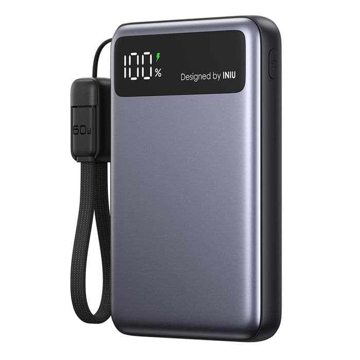 INIU 20000mAh Powerbank med Inbyggd USB-C Kabel, 45W PD3.0 & QC4.0 Snabbladdning, Liten men Stark, Mobiltelefon Externt Batteri för iPhone 16 15 14 13 12 Pro Max iPad Samsung Galaxy S24 S23 Note 20