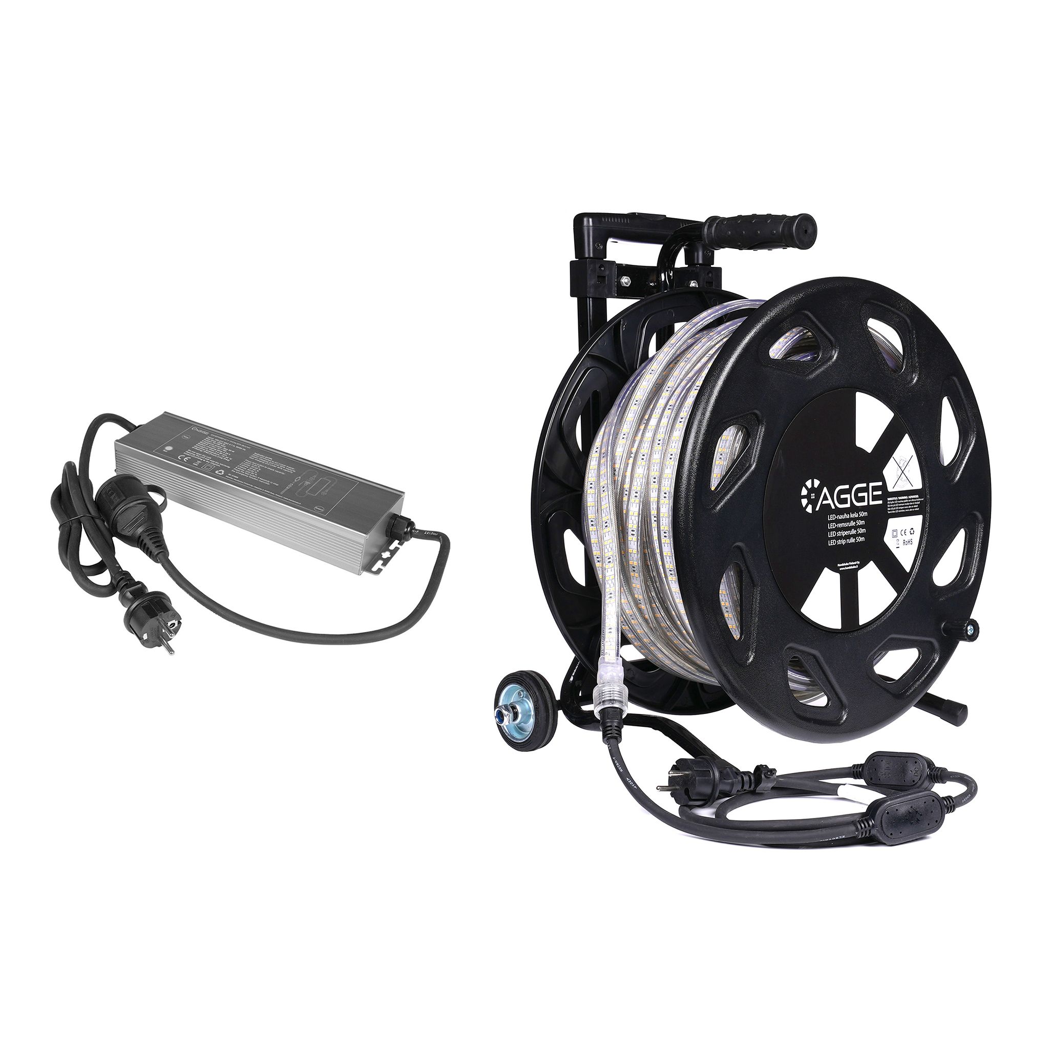 LED-list / Arbetsbelysning AGGE 230V - 1500 lm/m, 50 m - Rulle, LED-list med nätsladd + Powerbank