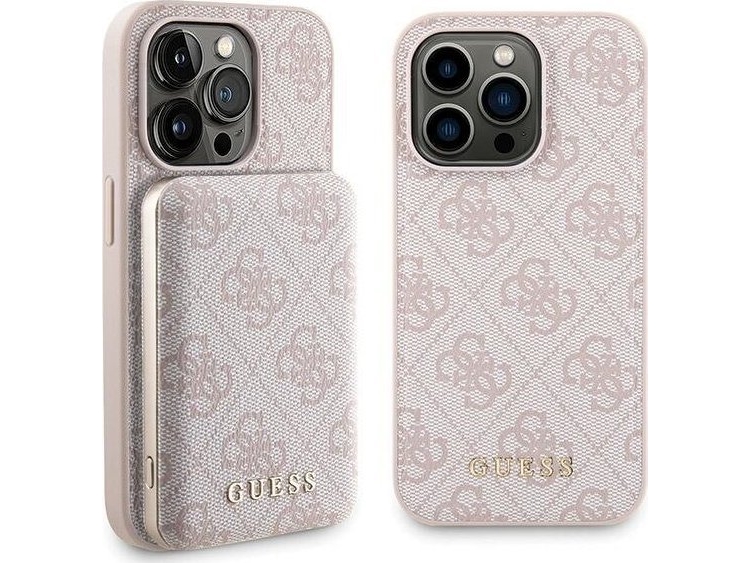 Fodral Set Guess Gubpm5p15l4gemgp Iphone 15 Pro 6,1" Hardcase + Powerbank 5000Mah Magsafe Rosa/Rosa 4G Metal Logo