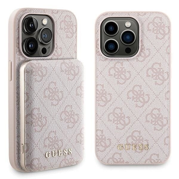 Guess 4G Metall Logo fodral set för iPhone 15 Pro Max + 5000mAh MagSafe powerbank - rosa