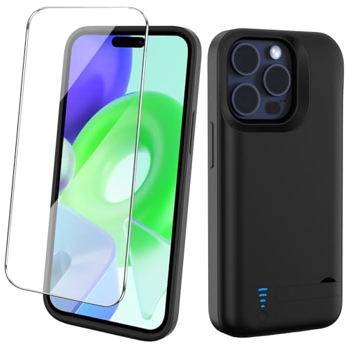 Giabuao Batterifodral för iPhone 15 Pro Max (6,7 tum), 8500 mAh 360° skyddande batterifodral för bärbar laddare med stativ, uppladdningsbar och expanderbar Powerbank för iPhone 15 Pro Max
