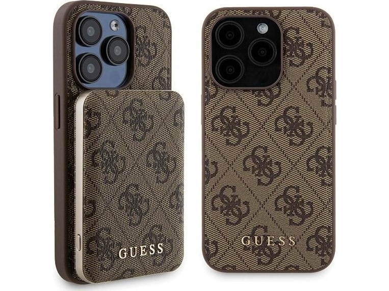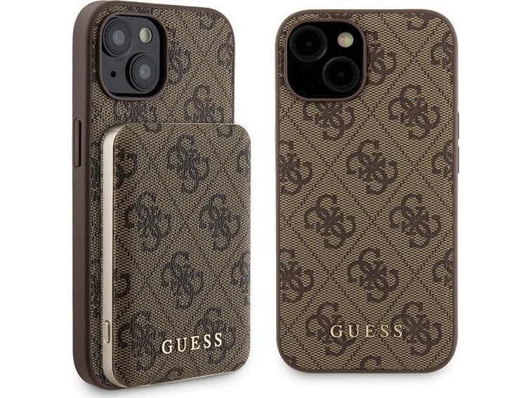 Apple Iphone 15 Guess Dėklas + Powerbank Magsafe 4G Metal Logo 5000Mah (Gubpm5p15s4gemgw) Rudos Spalvos