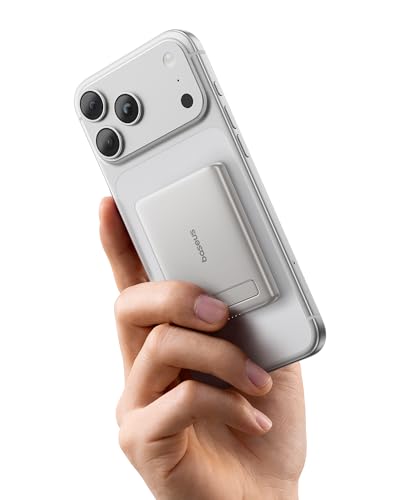 Baseus Mini MagSafe Powerbank 5 000 mAh Qi2-certifierad med fällbart stativ, PD 20 W magnetisk powerbank USB C trådlös powerbank kompatibel med iPhone 17/16/15/14/13/12/Pro Max-serien, titan