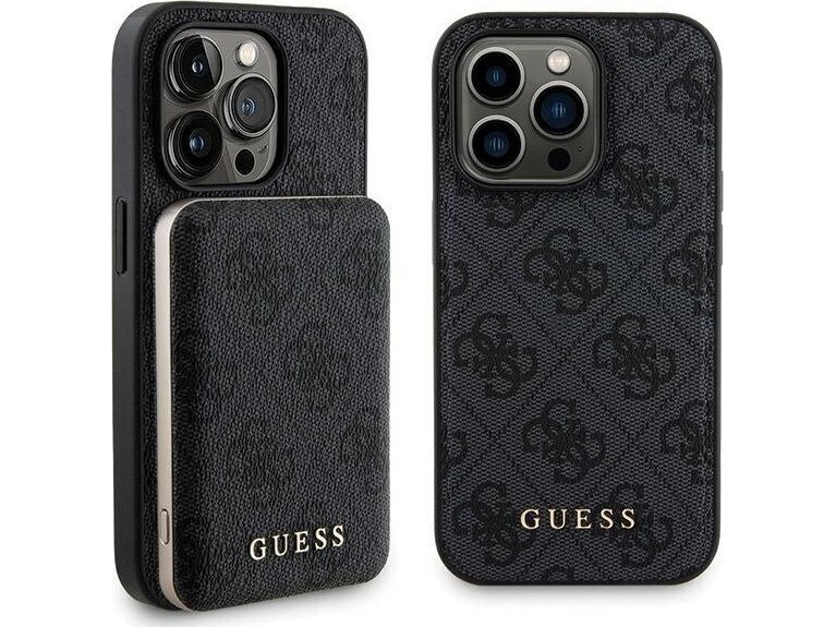 Deklas Rinkinys Guess Gubpm5p14x4gemgk Iphone 14 Pro Max 6.7" Hardcase + Powerbank 5000Mah Magsafe Juoda/Juodas 4G Metal Logo