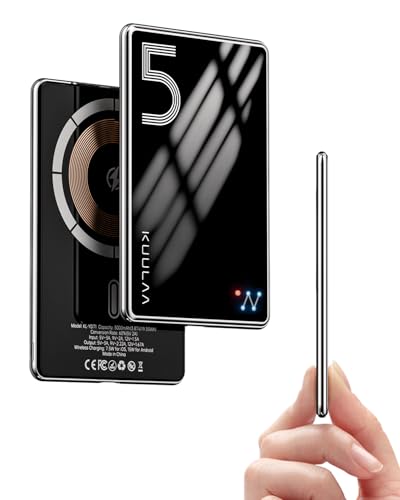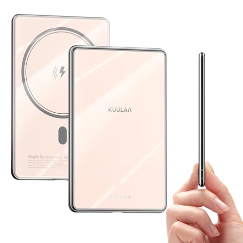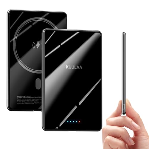 Kuulaa 8mm Ultra Slim Powerbank för Magsafe, 5000mAh magnetisk powerbank med PD 20W USB C Snabb Laddning, Trådlöst Bärbar Laddare kompatibelt med iPhone 16 Pro Max/Pro/16/15 Pro Max/Pro/14/13/12