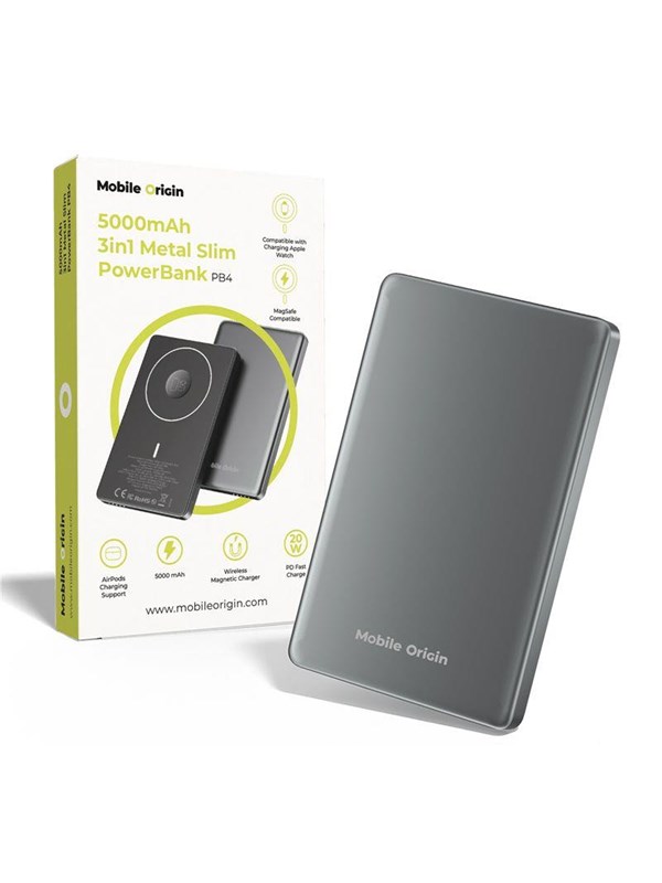 Mobile Origin 5000mAh 3in1 Metal Slim PowerBank PB4 PowerBank - Grey - 5000 mAh