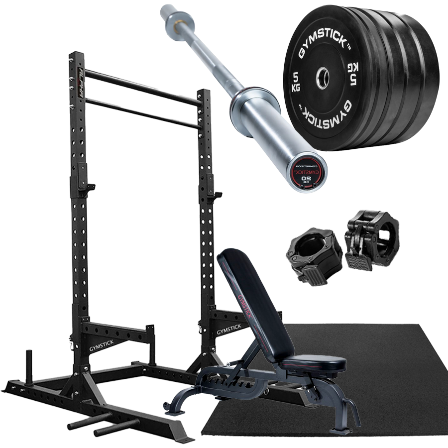 Gympaket - Gymstick (Bänk: Adjustable Bench Pro, Golv: Inget golv, Powerrack: Alpha Cage, Skivstång: 20kg Competition Bar)