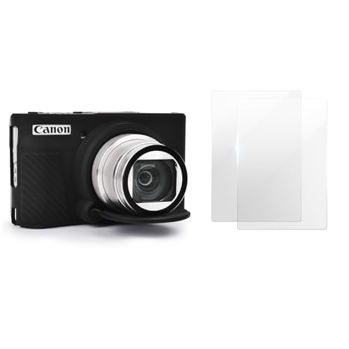 VOVMOEYA SX740 kameraväskor tillbehörssats [med 2 LCD-härdade filmer], silikonskyddsfodral kompatibelt med Canon PowerShot SX730 SX740 HS digitalkamera, Svart, kompaktowy, kameraväska