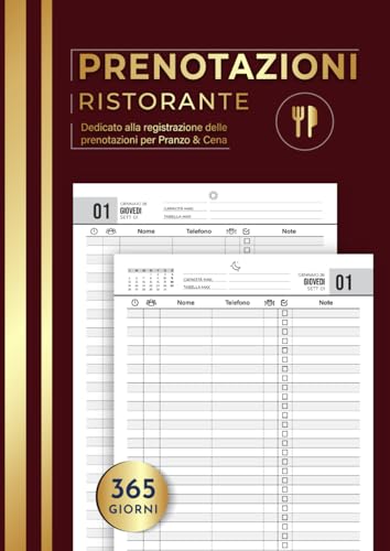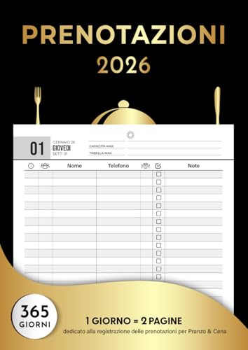 Agenda Prenotazioni Ristorante 2026: Libro prenotazioni 2 Pagine X Giorno (Cena e pranzo) per hotel, ristoranti e pizzerie con Feste e celebrazioni nazionali italiane
