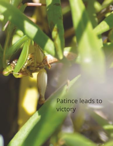Patience leads to victory: 8.5x11 college ruled notebook with feeding praying mantis cover