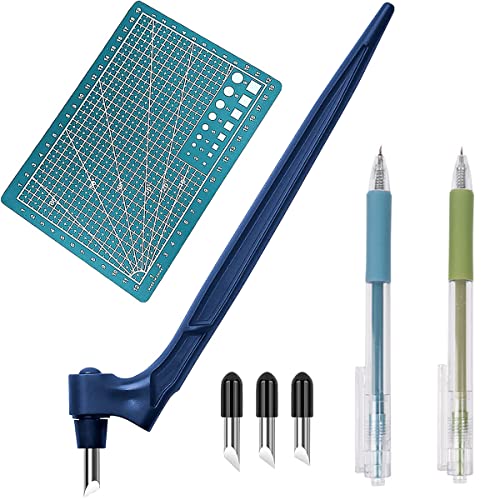 Tashce Craft Skärverktygsset 7 delar, rostfritt stål pysselknivset 360 graders precision med 3 reservblad, A4-skärmatta och 2 skärstift, hantverksset för gör-det-själv hantverk scrapbooking