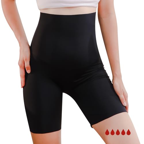 Carer Sportshorts för kvinnor, sportshorts med hög midja med 50 ml snabbabsorberande sugdyna integrerad underklädes-design perfekt för menstruationssport, yoga/löpning/fitness, svart, XL