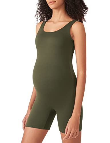 POSHDIVAH Women's Maternity Bodysuit Pregnancy Shapewear Sleeveless Scoop Neck Tank Top Shorts Romper Jumpsuit for Photoshoot Yoga Green Medium