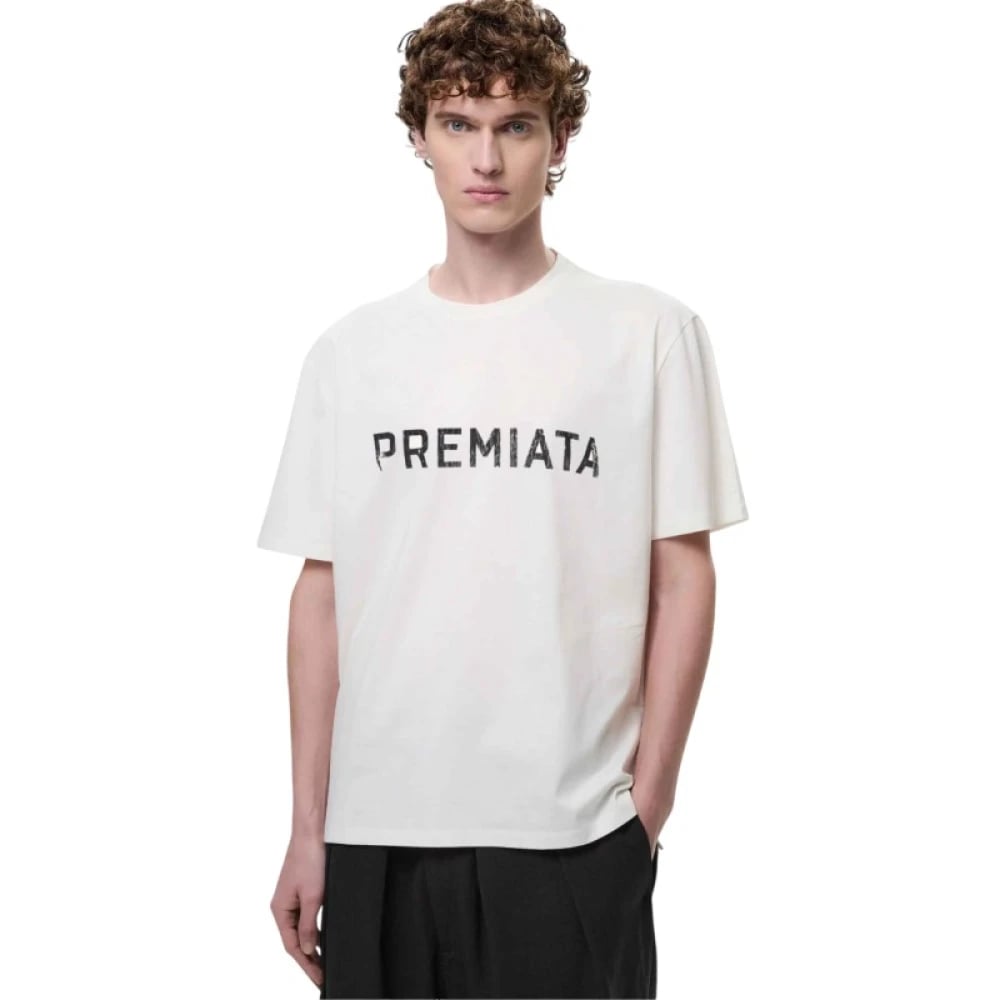 Premiata, Toppar , Herr, M, Bomull, Vit T-shirt med centralt logotyp